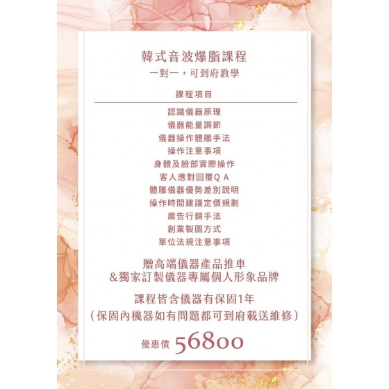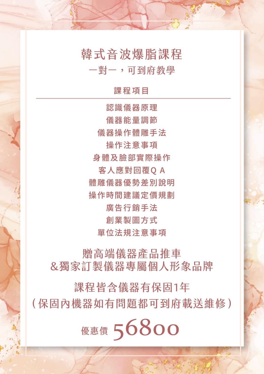 在不景氣的時代,想要讓自己更有工作競爭力? C.c美體美學沙龍 由熱愛美容事業的師資群, 量身推出了獨家的韓式音波爆脂課程, 【一對一,可到府教學】 想要投身美容行業、想要學習一技之長的朋友們, 可以在本美學沙龍的協助之下, 順利習得完整的美容技術,且不斷知識培訓 成為足以獨當一面的美容師。 免費課程諮詢 (一鍵點擊)