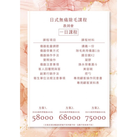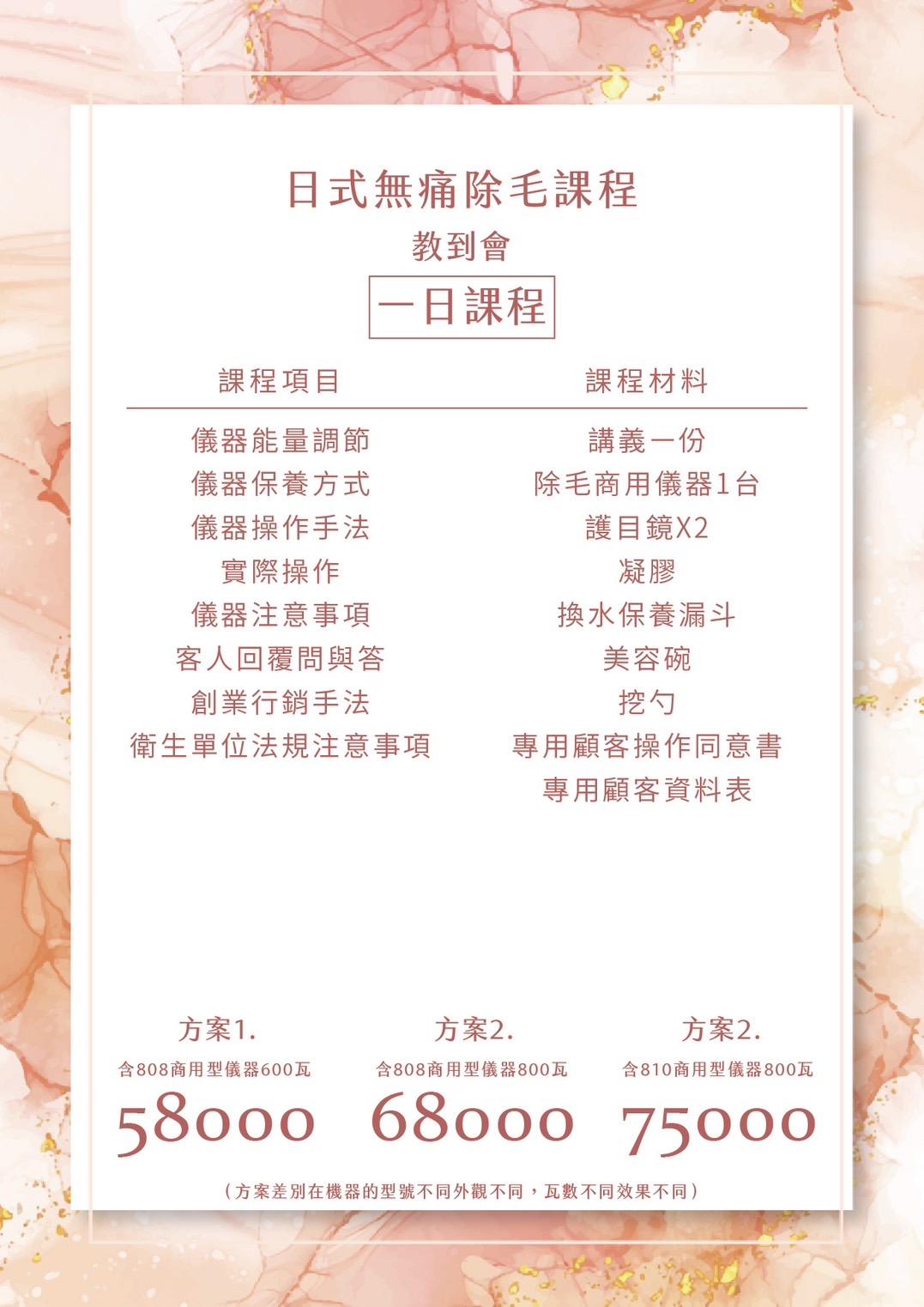 除了熱蠟除毛指導,C.c美體美學沙龍也有專門的冰肌除毛教學,